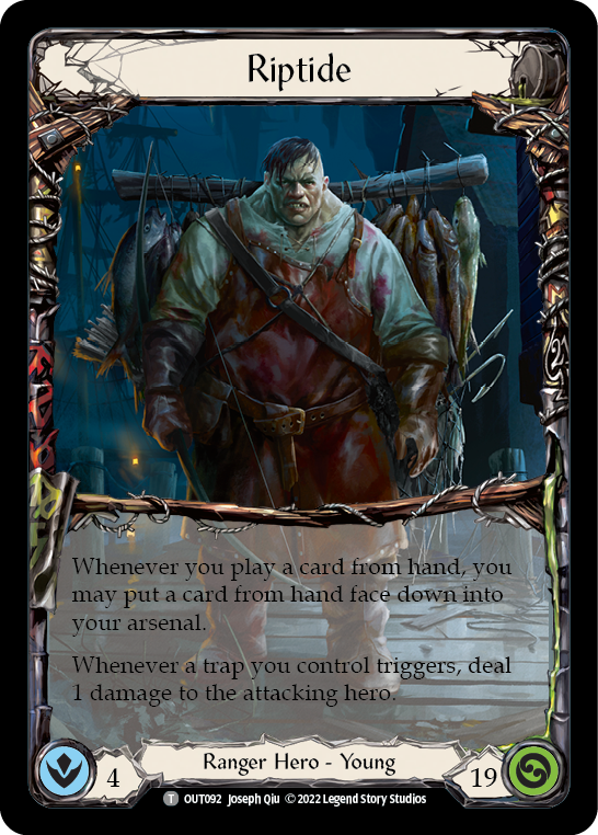 Whenever you play a card from hand, you may put a card from hand face down into your arsenal. Whenever a trap you control triggers, deal 1 damage to the attacking hero.