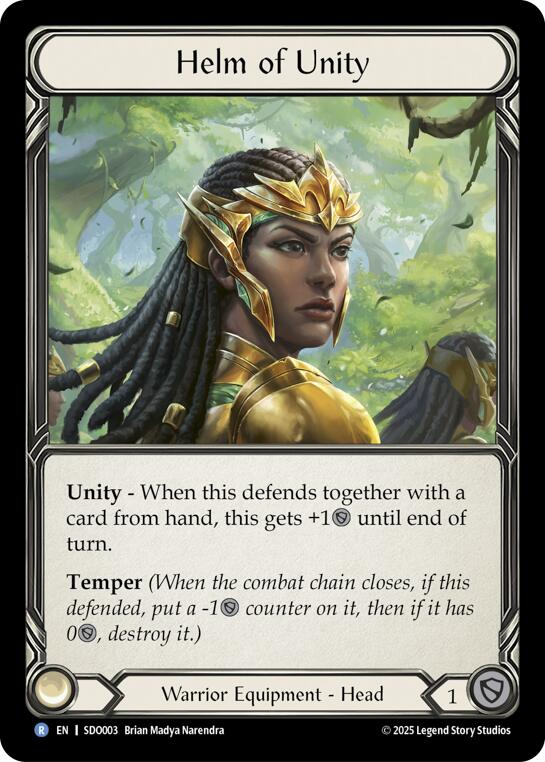 Unity - When this defends together with a card from hand, this gets +1DEFENSE until end of turn. Temper (When the combat chain closes, if this defended, put a -1DEFENSE counter on it, then if it has 0DEFENSE, destroy it.)